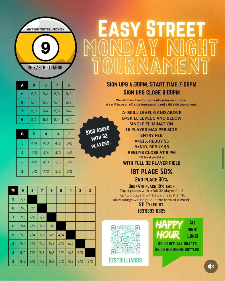 Monterey's upscale pool hall. Available for parties and corporate events.